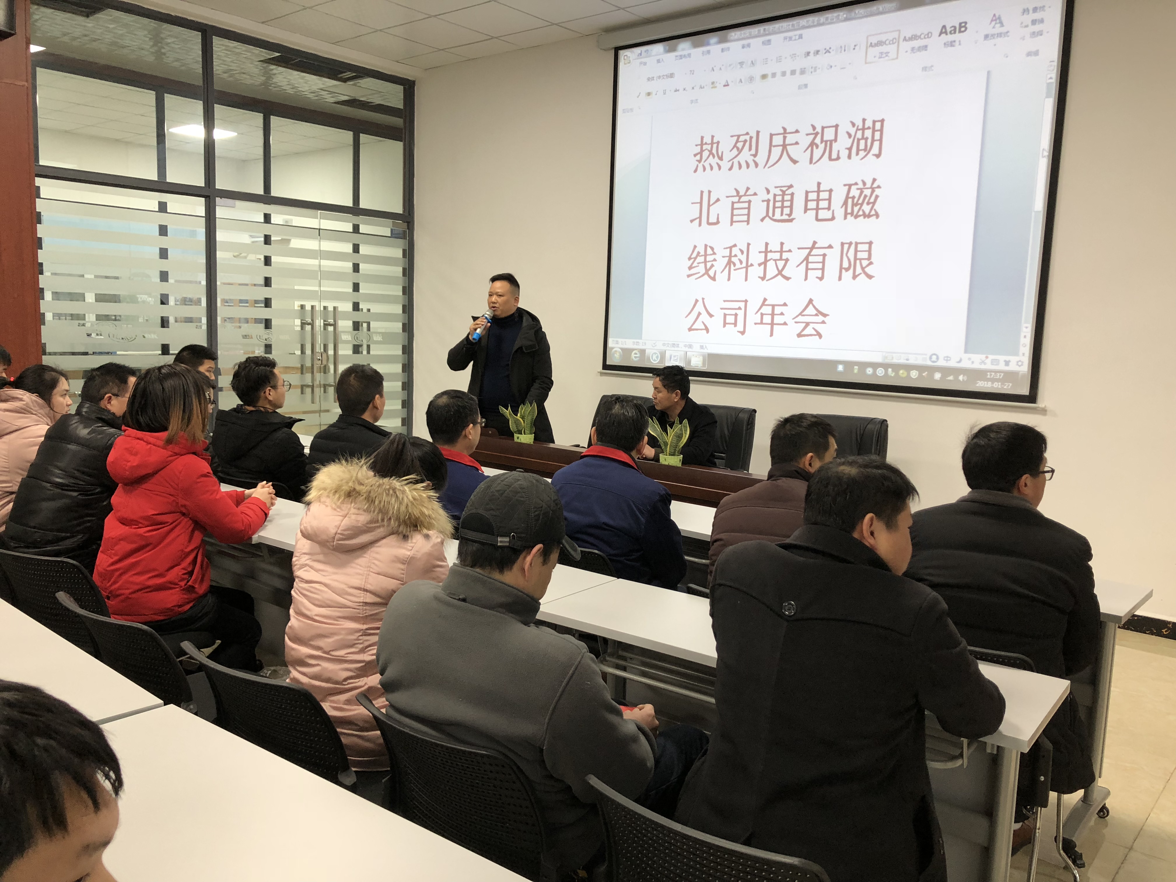 2018年1月27日,公司在多媒體會議室舉行了2017年年會。雖然開廠短短幾個月,但我們各項(xiàng)設(shè)施、人員已配備齊全。這是湖北首通第一個年會,同樣也是湖通人的第一個年會。會上,我司總經(jīng)理韓照虎首先總結(jié)了一下2017年我司建廠到正式投產(chǎn)完成的一系列工作情況;其次,匯報(bào)了2018年度工作計(jì)劃,新的一年工作部署;最后,歡迎大家來到湖北首通,讓我們成為一家人。